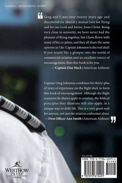 Greg and I met over twenty years ago and discovered we shared a mutual love for flying and for our Lord and Savior, Jesus Christ. Being very close in seniority, we have never had the pleasure of flying together, but I have flown with many of his co-pilots, and they all share the same opinion as I do: Captain Johnston is the real deal! If you would like a glimpse into the world of commercial aviation and an excellent source of encouragement, then this book is for you. Captain Dan Mack (American Airlines) Captain Greg Johnston combines his thirty-plus of years of experience on the flight deck to form this book of encouragement. Although the flight scenarios he shares apply to aviation, the biblical principles they illustrate will also apply, in a unique way, to daily life. This is a very good read for anyone, not just the aviation enthusiast alone. First Officer Ann Smith (American Airlines)