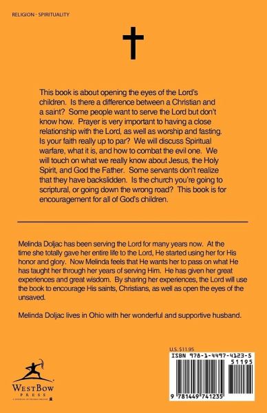 This book is about opening the eyes of the Lord's children. Is there a difference between a Christian and a saint? Some people want to serve the Lord but don't know how. Prayer is very important to having a close relationship with the Lord, as well as worship and fasting. Is your faith really up to par? We will discuss Spiritual warfare, what it is, and how to combat the evil one. We will touch on what we really know about Jesus, the Holy Spirit, and God the Father. Some servants don't realize that they have backslidden. Is the church you're going to scriptural, or going down the wrong road? This book is for encouragement for all of God's children.
