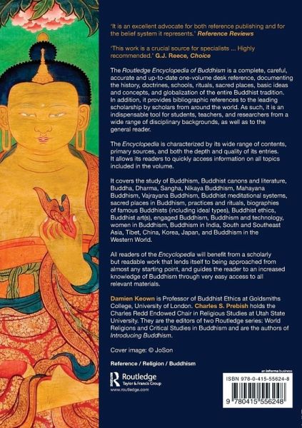 'It is an excellent advocate for both reference publishing and for the belief system it represents' - Reference Reviews 'This work is a crucial source for specialists...Highly recommended' - G. J. Reece, American University, Choice The Routledge Encyclopedia of Buddhism is a complete up-to-date one-volume desk reference, documenting the history, doctrines, schools, rituals, sacred places, basic ideas and concepts, and globalization of the entire Buddhist tradition. In addition, it provides bibliographic references to the leading scholarship by scholar from around the world. As such, it is an indispensable tool for students, teachers, and researchers from a wide range of disciplinary backgrounds, as well as to the general reader. The Encyclopedia is characterized by its wide range of contents, primary sources, and both the depth and quality of its entries. It allows its readers to quickly access information on all topics included in the volume. It covers the study of Buddhism, Buddhist canons and literature, Buddha, Dharma, Sangha, Nikaya Buddhism, Mahayana Buddhism, Vajrayana Buddhism, Buddhist meditational systems, sacred places in Buddhism, practices and rituals, biographies of famous Buddhists (including ideal types), Buddhist ethics, Buddhist art(s), engaged Buddhism, Buddhism and technology, women in Buddhism, Buddhism in India, South and Southeast Asia, Tibet, China, Korea, Japan, and Buddhism in the Western World. All readers of the Encyclopedia will benefit from a scholarly but readable work that lends itself to being approached from almost any starting point, and guides the reader to an increased knowledge of Buddhism through very easy access to all relevant materials.