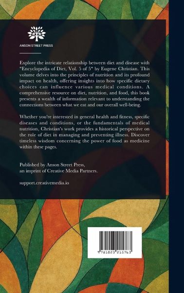 Explore the intricate relationship between diet and disease with "Encyclopedia of Diet, Vol. 5 of 5" by Eugene Christian. This volume delves into the principles of nutrition and its profound impact on health, offering insights into how specific dietary choices can influence various medical conditions. A comprehensive resource on diet, nutrition, and food, this book presents a wealth of information relevant to understanding the connections between what we eat and our overall well-being. Whether you're interested in general health and fitness, specific diseases and conditions, or the fundamentals of medical nutrition, Christian's work provides a historical perspective on the role of diet in managing and preventing illness. Discover timeless wisdom concerning the power of food as medicine within these pages. This work has been selected by scholars as being culturally important, and is part of the knowledge base of civilization as we know it. This work is in the public domain in the United States of America, and possibly other nations. Within the United States, you may freely copy and distribute this work, as no entity (individual or corporate) has a copyright on the body of the work. Scholars believe, and we concur, that this work is important enough to be preserved, reproduced, and made generally available to the public. We appreciate your support of the preservation process, and thank you for being an important part of keeping this knowledge alive and relevant.