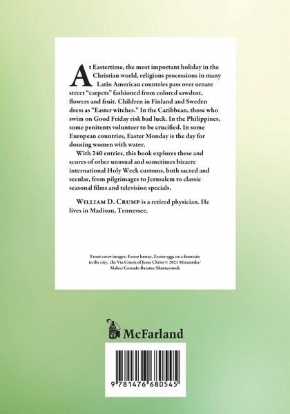At Eastertime, the most important holiday in the Christian world, religious processions in many Latin American countries pass over ornate street "carpets" fashioned from colored sawdust, flowers and fruit. Children in Finland and Sweden dress as "Easter witches." In the Caribbean, those who swim on Good Friday risk bad luck. In the Philippines, some penitents volunteer to be crucified. In some European countries, Easter Monday is the day for dousing women with water. With 240 entries, this book explores these and scores of other unusual and sometimes bizarre international Holy Week customs, both sacred and secular, from pilgrimages to Jerusalem to classic seasonal films and television specials.