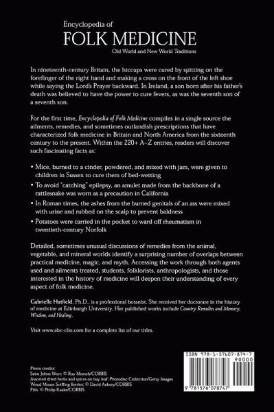 A wide-ranging compilation on the materia medica of the ordinary people of Britain and North America, comparing practices in both places. Informative and engaging, yet authoritative and well researched, Encyclopedia of Folk Medicine reveals previously unexamined connections between folk medicine practices on either side of the Atlantic, as well as within different cultures (Celtic, Native American, etc.) in the United Kingdom and America. For students, school and public libraries, folklorists, anthropologists, or anyone interested in the history of medicine, it offers a unique way to explore the fascinating crossroads where social history, folk culture, and medical science meet. From the 17th century to the present, the encyclopedia covers remedies from animal, vegetable, and mineral sources, as well as practices combining natural materia medica with rituals. Its over 200 alphabetically organized, fully cross-referenced entries allow readers to look up information both by ailment and by healing agent. Entries present both British and North American traditions side by side for easy comparison and identify the surprising number of overlaps between folk and scientific medicine.