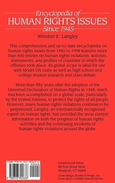 This outstanding, comprehensive, and up-to-date encyclopedia on human rights issues from 1945 to 1998 features more than 400 entries on incidents and violations, instruments and initiatives, countries and human rights activists. Its global scope is ideal for high school and college student research and class debate and for use with Model UN clubs. More than fifty years after the adoption of the Universal Declaration of Human Rights in 1948, much has been accomplished on a global scale, particularly by the United Nations, to protect the rights of all people, but many human rights violations continue to be perpetrated. Langley, an internationally recognized expert on human rights, has provided the most current information on both the progress of human rights activities and the continuing incidents of human rights violations around the globe. Entries cover major issues, incidents and violations, concepts and terms, activists, organizations, and human rights instruments. Entries on more than fifty nations from Afghanistan to Yugoslavia were selected based on the incidence of major human rights in those nations. Comprehensive cross-references in each entry make it easy to research a topic and its related entries easily. Each entry concludes with a selected list of further reading for more in-depth research. A timeline of significant dates since 1945 in the field of human rights and the text of the Universal Declaration of Human Rights add reference value.