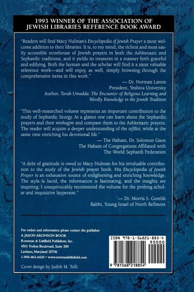 Fifteen years in the making, The Encyclopedia of Jewish Prayer is a monumental achievement. Never before has such a comprehensive resource been available to those searching for answers to questions on Jewish prayer. Macy Nulman has provided, in one unique, accessible volume, information on each and every prayer recited in the Ashkenazic and Sephardic traditions, creating an invaluable tool for study or quick reference. Prayer books are essentially cumulative anthologies that evolved over time as new prayers were added. Study of these prayers reveals insights into the history of Judaism, providing a deeper appreciation of the heritage that has sustained the Jewish people throughout the centuries. This volume, through its encyclopedic format, makes such a study easy and enjoyable. Arranged alphabetically by prayer, the encyclopedia entries include extensive liturgical information on the prayers, their composers and development, the laws and customs surrounding them, and their place in the service. All prayers, including not only prayers recited in the synagogue, but also the Grace After Meals and the prayers to be said before going to bed, prayers for special occasions such as weddings and circumcisions, prayers for the funeral ritual and for private devotion, are featured. The entries make extensive use of cross-referencing and bibliographical information to facilitate further study. In addition, the author discusses the many poetic insertions, known as piyyutim, recited on special Sabbaths, Holy Days, and festivals. Concise and easy to consult, The Encyclopedia of Jewish Prayer contains several indexes: two title indexes - one in Hebrew and one in transliteration - as well as an index of biblical verses and a name index. Additionally, a glossary defining technical terms and vocabulary associated with the prayers is provided. This important, one-of-a-kind reference volume is ideal for scholars, students, and others who want to know more about Jewish tradition.
