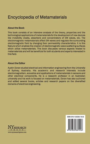 This book consists of an intensive analysis of the theory, properties and the technological applications of metamaterials for the development of new devices like invisibility cloaks, absorbers and concentrators of EM waves, etc. The electromagnetic metamaterials affect EM waves and regulate the surrounding electromagnetic field by changing their permeability characteristics. It is this feature which enables the creation of electromagnetic wave scattering surfaces which utilize metamaterials. This book discusses various aspects related to metamaterials and will be beneficial for both students and experts interested in this field