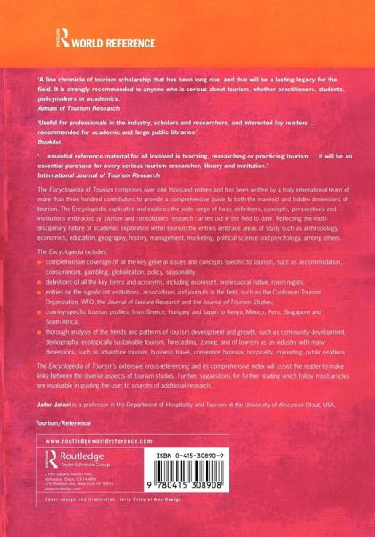 In fewer than three hundred years tourism has become a global service industry of great economic, cultural and political importance. Published to critical acclaim, the Encyclopedia of Tourism - now available as a Routledge World Reference title - is the definitive one-volume reference source to this challenging multisectoral industry and multi disciplinary field of study.