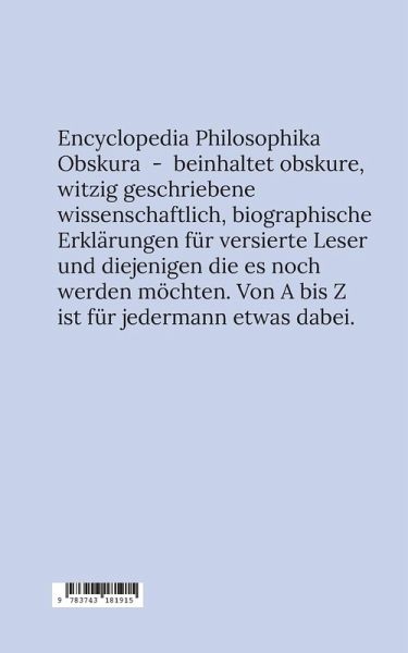 Encyclopedia Philosophika Obskura - beinhaltet obskure, witzig geschriebene wissenschaftlich, biographische Erklärungen für versierte Leser und diejenigen die es noch werden möchten. Von A bis Z ist für jedermann etwas dabei.