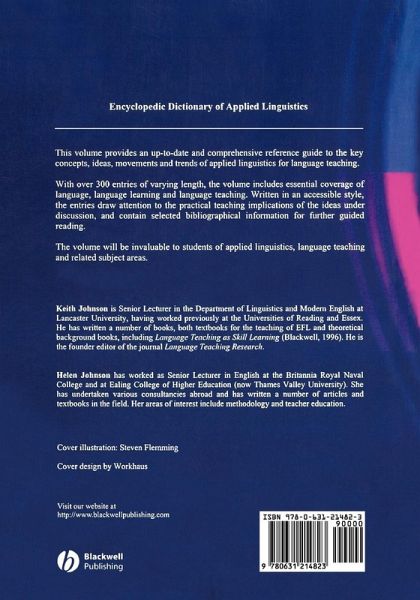 Keith Johnson is Senior Lecturer in the Department of Linguistics and Modern English at Lancaster University, having worked previously at the Universities of Reading and Essex. He has written a number of books, both textbooks for the teaching of EFL and theoretical background books, including Language Teaching as Skill Learning (Blackwell, 1996). He is the founder editor of the journal Language Teaching Research. Helen Johnson has worked as Senior Lecturer in English at the Britannia Royal Naval College and at Ealing College of Higher Education (now Thames Valley University). She has undertaken various consultancies abroad and has written a number of articles and textbooks in the field. Her areas of interest include methodology and teacher education.