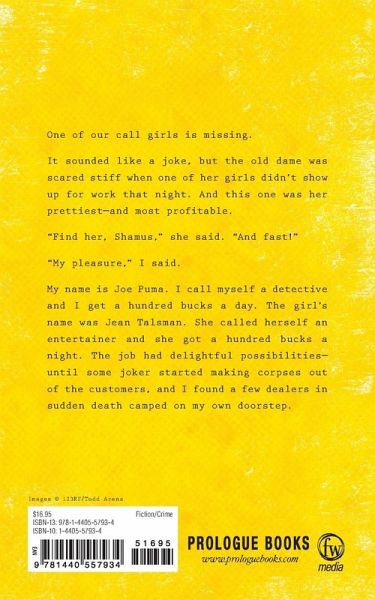 One of our call girls is missing It sounded like a joke, but the old dame was scared stiff when one of her girls didn't show up for work that night. And this one was her prettiest - and most profitable. ''Find her, shamus,'' she said. ''And fast!'' ''My pleasure,'' I said. My name is Joe Puma. I call myself a detective and I get a hundred bucks a day. The girl's name was Jean Talsman. She called herself an entertainer and she got a hundred bucks a night. The job had delightful possibilities - until some joker started making corpses out of the customers, and I found a few dealers in sudden death camped on my own doorstep.