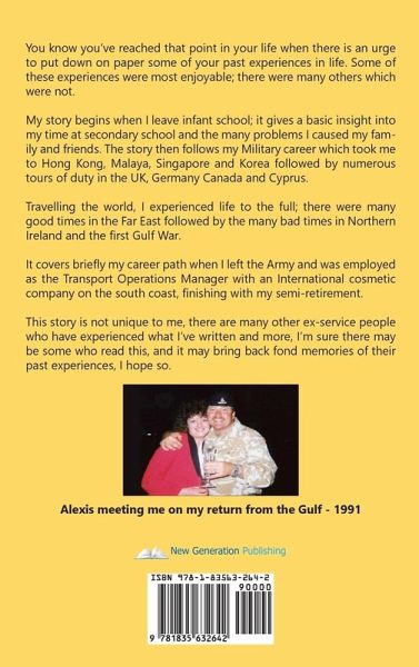 You know you've reached that point in your life when there is an urge to put down on paper some of your past experiences in life. Some of these experiences were most enjoyable; there were many others which were not. My story begins when I leave infant school; it gives a basic insight into my time at secondary school and the many problems I caused my family and friends. The story then follows my Military career which took me to Hong Kong, Malaya, Singapore and Korea followed by numerous tours of duty in the UK, Germany Canada and Cyprus. Travelling the world, I experienced life to the full; there were many good times in the Far East followed by the many bad times in Northern Ireland and the first Gulf War. It covers briefly my career path when I left the Army and was employed as the Transport Operations Manager with an International cosmetic company on the south coast, finishing with my semi-retirement. This story is not unique to me, there are many other ex-service people who have experienced what I've written and more, I'm sure there may be some who read this, and it may bring back fond memories of their past experiences, I hope so.