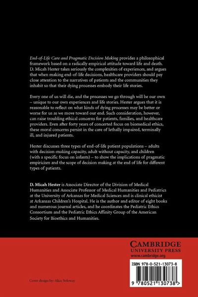 Every one of us will die, and the processes we go through will be our own - unique to our own experiences and life stories. End-of-Life Care and Pragmatic Decision Making provides a pragmatic philosophical framework based on a radically empirical attitude toward life and death. D. Micah Hester takes seriously the complexities of experiences and argues that when making end-of-life decisions, healthcare providers ought to pay close attention to the narratives of patients and the communities they inhabit so that their dying processes embody their life stories. He discusses three types of end-of-life patient populations - adults with decision-making capacity, adults without capacity, and children (with a strong focus on infants) - to show the implications of pragmatic empiricism and the scope of decision making at the end of life for different types of patients.