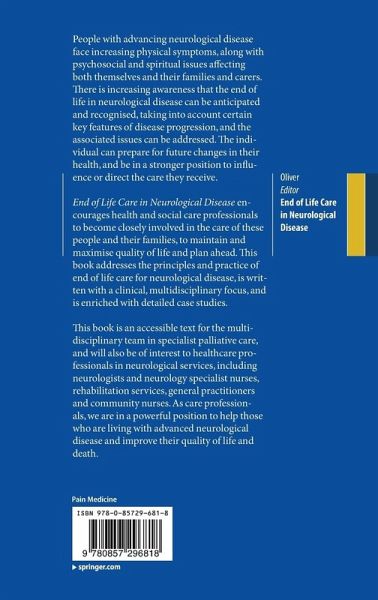"This book grew out of the report on a UK meeting of health and social care professionals, together with representative patient organisations, convened to discuss the needs of people with progressive neurological disease. ... This book represents a lot of work and consideration, cataloguing the needs of these patients and their carers and working out how those needs can be best met." (Roger Woodruff, Newsletter IAHPC book reviews, hospicecare.com, Vol. 14 (11), November, 2013)