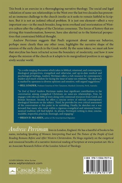 This book is an exercise in a thoroughgoing narrative theology. The social and legal validation of same-sex relationships in the West over the last two decades has presented an immense challenge to the church insofar as it seeks to remain faithful to Scripture. But it is not an isolated ethical problem. It is just one element--albeit a very important one--in the much broader, long-term overhaul and reorientation of Western culture after the collapse of the Christian consensus. The forces of history that are driving this transformation, however, have also alerted us to the historical perspectives that constrained biblical thought. Andrew Perriman suggests that Paul's argument about same-sex behavior, perhaps more clearly than any other issue, highlights the narrative shape of the mission of the early church in the Greek world. By the same token, we must ask how that storyline has been refracted across the boundary of modernity, and how it now shapes the mission of the church as it adapts to its marginalized position in an aggressively secular world.