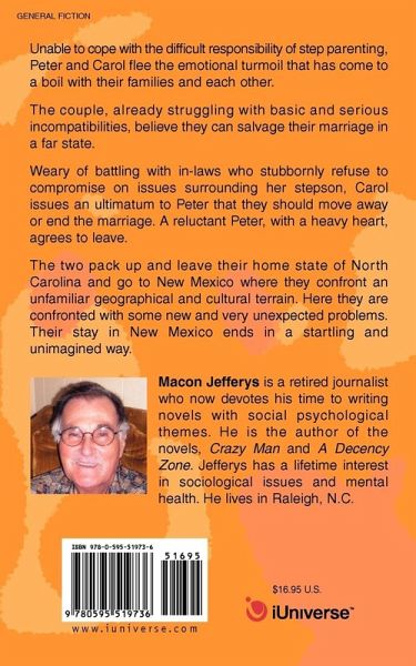 Unable to cope with the difficult responsibility of step parenting, Peter and Carol flee the emotional turmoil that has come to a boil with their families and each other. The couple, already struggling with basic and serious incompatibilities, believe they can salvage their marriage in a far state. Weary of battling with in-laws who stubbornly refuse to compromise on issues surrounding her stepson, Carol issues an ultimatum to Peter that they should move away or end the marriage. A reluctant Peter, with a heavy heart, agrees to leave. The two pack up and leave their home state of North Carolina and go to New Mexico where they confront an unfamiliar geographical and cultural terrain. Here they are confronted with some new and very unexpected problems. Their stay in New Mexico ends in a startling and unimagined way.