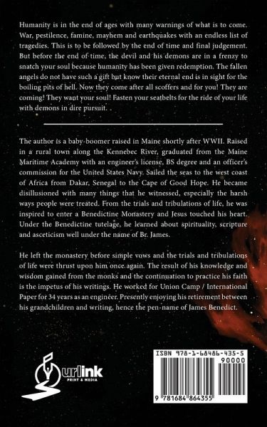 Humanity is in the end of ages with many warnings of what is to come. War, pestilence, famine, mayhem and earthquakes with an endless list of tragedies. This is to be followed by the end of time and final judgement. But before the end of time, the devil and his demons are in a frenzy to snatch your soul because humanity has been given redemption. The fallen angels do not have such a gift but know their eternal end is in sight for the boiling pits of hell. Now they come after all scoffers and for you! They are coming! They want your soul! Fasten your seatbelts for the ride of your life with demons in dire pursuit.