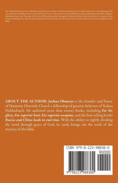 The truth about the end time is that the end time does not end the world but ends the circle of a sinful world and it is the beginning of the new and sinless world thus the new earth and the new heaven. There are two types of tribulations, general tribulations from Satan and great tribulations from God. The mark of the beast will be made manifest during the tribulation of Satan and is already here. No rapture before the great tribulation but after the great tribulation of God but believers will be protected. This book show how all these unfolds from the Bible.