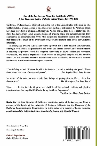 In capturing the the powerful forces that swept the state of California in the 1930s, Kevin Starr weaves an insightful analysis into his narrative fabric. Out of a shattered decade of economic and social dislocation, he constructs a coherent whole and a mirror for understanding our own time. 50 photos.