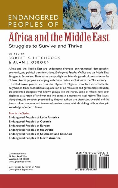 Africa and the Middle East are undergoing dramatic environmental, demographic, economic, and political transformations. This volume turns the spotlight on 14 endangered cultures as examples of how diverse peoples are coping with these radical evolutions in the 21st century. Little-known groups such as the Ogoni of Nigeria, who face environmental degradation from multinational exploitation of oil resources and government collusion, are presented alongside well-known groups like the Kurds, some of whom have been displaced as a result of civil war and live beneath a repressive Iraqi regime. The issues, viewpoints, and solutions presented by chapter authors are often controversial, and the format allows students and interested readers to use critical-thinking skills as they gain knowledge of other cultures. Endangered Peoples of Africa and the Middle East is the only reference for the high school and public library that gives a unique perspective on the threats to and responses of these groups. Each chapter gives an overview of the group to provide a context for discussing the challenges they face. A helpful Resource Guide lists further reading, films and videos, Web Sites, and organizations. Maps and photos complement the text.