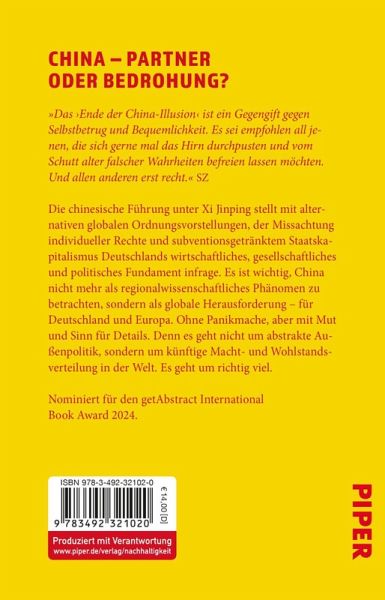 Die chinesische Führung unter Xi Jinping stellt mit alternativen globalen Ordnungsvorstellungen, der Missachtung individueller Rechte und subventionsgetränktem Staatskapitalismus Deutschlands wirtschaftliches und damit auch sein gesellschaftliches und politisches Fundament infrage. Wie sollen wir in Deutschland und Europa darauf reagieren? Es ist wichtig, China nicht mehr als regionalwissenschaftliches Phänomen zu betrachten, sondern als globale Frage und gesamtgesellschaftliche Herausforderung. Ohne Panikmache, aber mit Mut und Sinn für Details. Denn es geht nicht um abstrakte Außenpolitik, es geht um künftige Macht- und Wohlstandsverteilung in der Welt. Es geht um richtig viel.