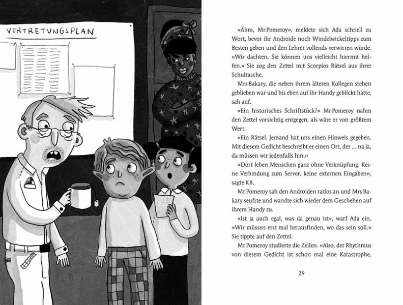 Ada, ihr Roboter-Freund KB und Opa beschließen, die Enklave tief im Wald aufzusuchen, wo sie den verlorenen Sohn von Professorin Shelly vermuten. Und tatsächlich, sie finden Robert bei den KI-Gegnern, die sich hier in der Natur ohne Strom und Technik eingerichtet haben. Leider hat Robert sein Gedächtnis verloren und erinnert sich an gar nichts mehr. Wie gut, dass KB weiß, wie man Robert auf die Sprünge helfen kann. Doch KBs Akku leert sich ohne Strom rasant ... Kann Ada ihren Freund noch rechtzeitig an die rettende Steckdose bringen?