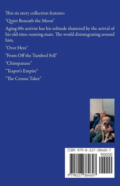 This six story collection features: "Quiet Beneath the Moon" Aging 60s activist has his solitude shattered by the arrival of his old-time running mate. The world disintegrating around him. "Over Here" "From Off the Tumbrel Fell" "Chimpanzee" "Teapot's Empire" "The Census Taker"