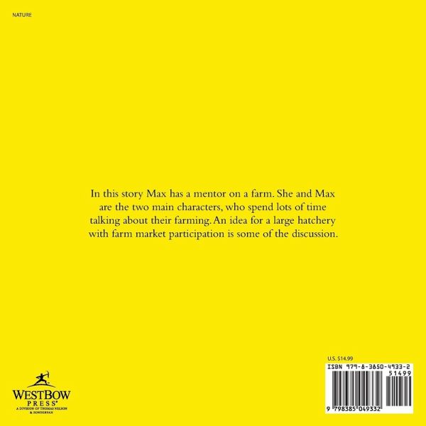 In this story Max has a mentor on a farm. She and Max are the two main characters, who spend lots of time talking about their farming. An idea for a large hatchery with farm market participation is some of the discussion.