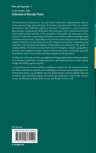 The book is the first comprehensive analysis of the macroecology and geobotany of endemic vascular plants with case-studies and analyses from different regions in the world. Endemism is a pre-extinction phenomenon. Endemics are threatened with extinction. Due to international nature conservation policies and due to the perception of the public the concept's importance is increasing. Endemism can result from different biological and environmental processes. Depending on the process conservation measures should be adapted. Endemic vascular plant taxa, in the setting of their species composition and vegetation types are important features of landscapes and indicators of the quality of relating habitats. The book is an important basis for biologists, ecologists, geographers, planners and managers of nature reserves and national parks, and people generally interested in nature conservation and biogeography of vascular plants.