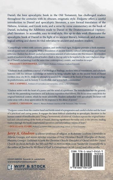 Daniel, the lone apocalyptic book in the Old Testament, has challenged readers throughout the centuries with its obscure, enigmatic style. Endgame offers a careful introduction to Daniel and apocalyptic literature, a new formal translation of the Hebrew, Aramaic, and Greek texts, and a verse-by-verse commentary on the book of Daniel, including the Additions made to Daniel in the Deuterocanonical (Apocryphal) literature. In accessible, easy-to-read style, this up-to-date work illuminates the apocalyptic book of Daniel in the light of its ancient literary, historical, and archaeological setting and shows its vital relevance to ancient and modern readers.