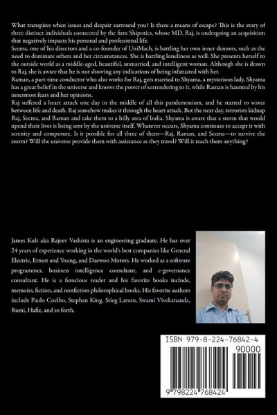 What transpires when issues and despair surround you? Is there a means of escape? This is the story of three distinct individuals connected by the firm Shipotics, whose MD, Raj, is undergoing an acquisition that negatively impacts his personal and professional life. Seema, one of his directors and a co-founder of UniMach, is battling her own inner demons, such as the need to dominate others and her circumstances. She is battling loneliness as well. She presents herself to the outside world as a middle-aged, beautiful, unmarried, and intelligent woman. Although she is drawn to Raj, she is aware that he is not showing any indications of being infatuated with her. Raman, a part-time conductor who also works for Raj, gets married to Shyama, a mysterious lady. Shyama has a great belief in the universe and knows the power of surrendering to it, while Raman is haunted by his innermost fears and her opinions. Raj suffered a heart attack one day in the middle of all this pandemonium, and he started to waver between life and death. Raj somehow makes it through the heart attack. But the next day, terrorists kidnap Raj, Seema, and Raman and take them to a hilly area of India. Shyama is aware that a storm that would upend their lives is being sent by the universe itself. Whatever occurs, Shyama continues to accept it with serenity and composure. Is it possible for all three of them-Raj, Raman, and Seema-to survive the storm? Will the universe provide them with assistance as they travel? Will it teach them anything?