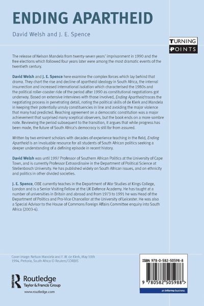 When we think of the twilight of the twentieth century we think of the spectacular collapse of communism, the famines in Africa, civil wars and genocides across the globe and inexorable dismantling of South Africa's segregated world. Apartheid was reduced to rubble through the courage of many martyrs and the pressure of world disapproval. This is the history of the final years of one of the worst contemporary regimes, showing the violent conflict between black and white and the clashes of personality between Botha, de Klerk and Mandela. Professor Jack Spence looks at the most controversial issues associated with apartheid - the ambiguous figure of Nelson Mandela; the disastrous attempts at democracy in the 1990s and continuing persistent problems now; the issue of segregation itself versus apartheid; and the episodes thrown up by the commissions. A fascinating account of the final years of Apartheid, showing the violent conflict between black and white and the clashes of personality between Botha, de Klerk and Mandela. As well as a full treatment of all these issues, the book contains original interviews and first hand experiences.