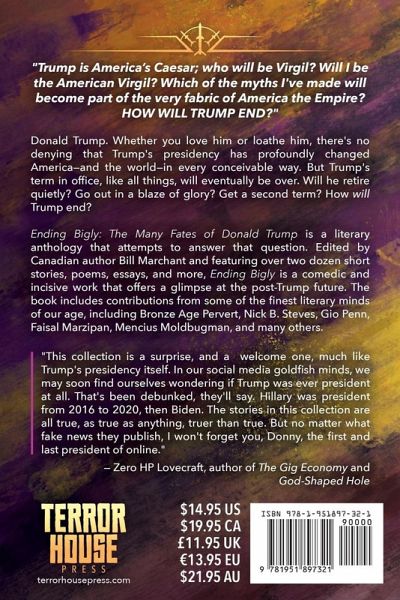 Edited by Canadian author Bill Marchant and featuring over two dozen short stories, poems, essays, and more, Ending Bigly is a comedic and incisive work that offers a glimpse at the post-Trump future.