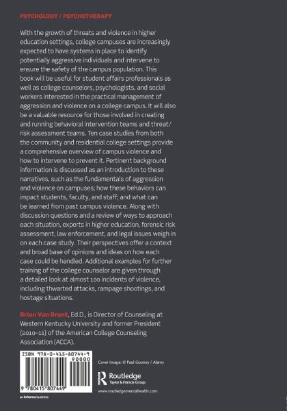 With the growth of threats and violence in higher education settings, college campuses are increasingly expected to have systems in place to identify potentially aggressive individuals and intervene to ensure the safety of the campus population. This book will be useful for student affairs professionals as well as college counselors, psychologists, social workers interested in the practical management of aggression and violence on a college campus. It will also be a valuable resource for those involved in creating and running behavioral intervention teams and threat/risk assessment teams. Ten case studies from both the community and residential college settings provide a comprehensive overview of campus violence and how to intervene to prevent it. Pertinent background information is discussed as an introduction to these narratives, such as the fundamentals of aggression and violence on campuses; how these behaviors can impact students, faculty, and staff; and what can be learned from past campus violence. Along with discussion questions and a review of ways to approach each situation, experts in higher education, forensic risk assessment, law enforcement, and legal issues weigh in on each case study. Their perspectives offer a context and broad base of opinions and ideas on how each case could be handled. Additional examples for further training of the college counselor are given through a detailed look at almost 100 incidents of violence, including thwarted attacks, rampage shootings, and hostage situations.
