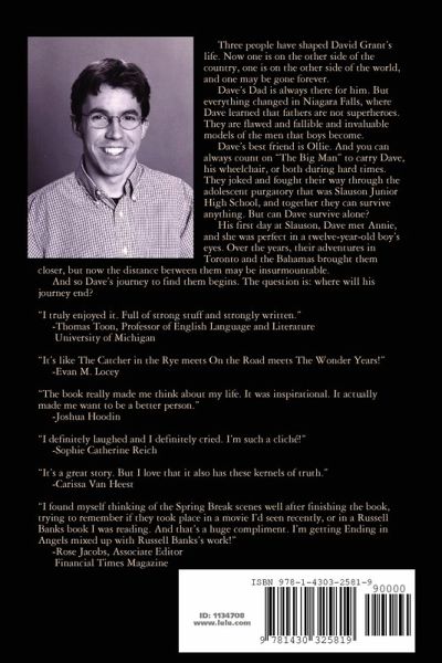 Three people have shaped David Grant's life. Now one is on the other side of the country, one is on the other side of the world, and one may be gone forever. Dave's Dad is always there for him. But everything changed in Niagara Falls, where Dave learned that fathers are not superheroes. They are flawed and fallible and invaluable models of the men that boys become. Dave's best friend is Ollie. And you can always count on "The Big Man" to carry Dave, his wheelchair, or both during hard times. They joked and fought their way through the adolescent purgatory that was Slauson Junior High School, and together they can survive anything. But can Dave survive alone? His first day at Slauson, Dave met Annie, and she was perfect in a twelve-year-old boy's eyes. Over the years, their adventures in Toronto and the Bahamas brought them closer, but now the distance between them may be insurmountable. And so Dave's journey to find them begins. The question is: where will his journey end?