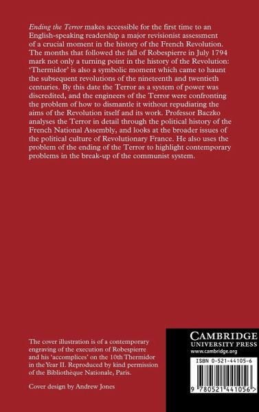 Ending the Terror makes accessible for the first time to an English-speaking readership a major revisionist assessment of a crucial moment in the history of the French Revolution. The months that followed the fall of Robespierre in July 1794 mark not only a turning point in the history of the Revolution: 'Thermidor' is also a symbolic moment which came to haunt the subsequent revolutions of the nineteenth and twentieth centuries. By this date the Terror as a system of power was discredited, and the engineers of the Terror were confronting the problem of how to dismantle it without repudiating the aims of the Revolution itself and its work. Professor Baczko analyses the Terror in detail through the political history of the French National Assembly, and looks at the broader issues of the political culture of Revolutionary France. He also uses the problem of the ending of the Terror to highlight contemporary problems in the breakup of the communist system.