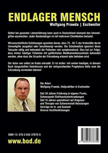 Selbst bei gesunder Lebensführung kann auch in Deutschland niemand den Umweltgiften ausweichen. Jeder Bundesbürger ist mit mehreren Chemikalien belastet.Wissenschaftliche Schätzungen sprechen davon, dass 75 - 95 % der Krebsfälle durch Umweltgifte ausgelöst oder beschleunigt werden. Die Schulmedizin ignoriert diese Tatsache völlig und behandelt die Patienten rein symptomatisch. Dies hat zur Folge, dass immer häufiger Patienten mit gefährlichen Medikamentencocktails behandelt werden, ohne dass die Ursache der Erkrankung erkannt oder behoben wird.Der Autor war selbst an Krebs erkrankt. Er ist sicher: Mit seinen heutigen, in diesem Buch dargestellten Kenntnissen und der entsprechenden Prophylaxe hätte man die Erkrankung vermeiden können!