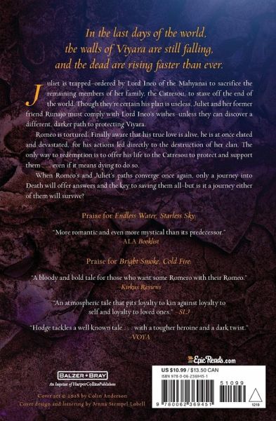 Sabriel meets Romeo and Juliet in the stunning sequel to Bright Smoke, Cold Fireâ from Rosamund Hodge, the author of Cruel Beauty and Crimson Bound. In the last days of the world, the walls of Viyara are still falling, and the dead are rising faster than ever.
