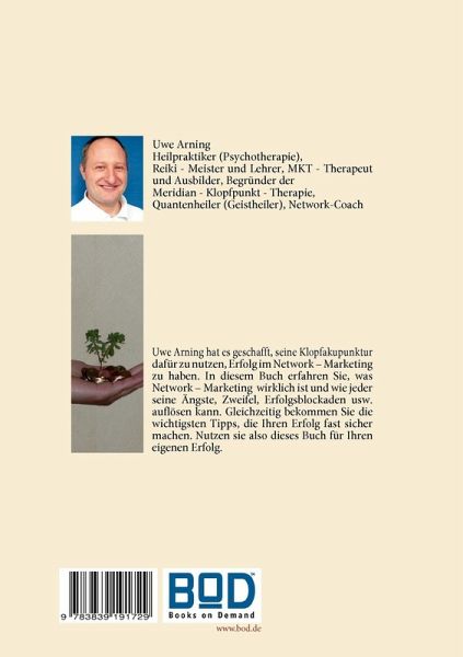 Uwe Arning hat es geschafft, seine Klopfakupunktur dafür zu nutzen, Erfolg im Network - Marketing zu haben. In diesem Buch erfahren Sie, was Network - Marketing wirklich ist und wie jeder seine Ängste, Zweifel, Erfolgsblockaden usw. auflösen kann. Gleichzeitig bekommen Sie die wichtigsten Tipps, die Ihren Erfolg fast sicher machen. Nutzen sie also dieses Buch für Ihren eigenen Erfolg.