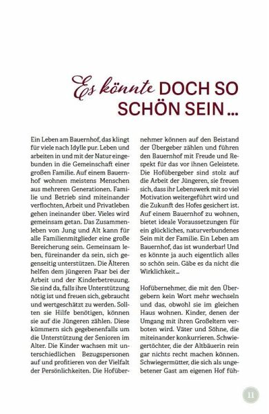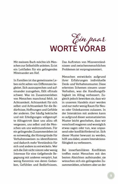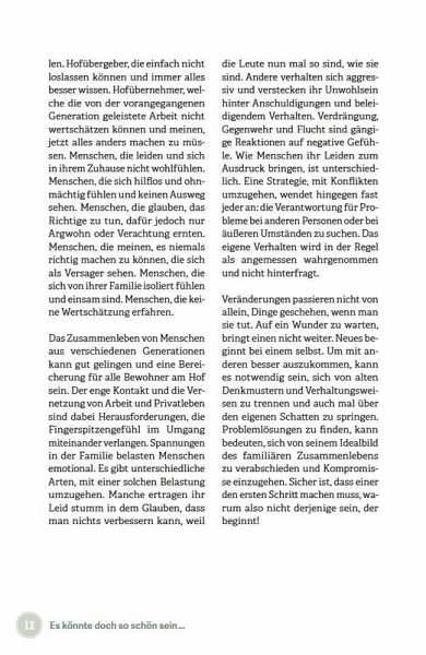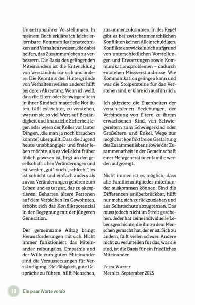 Gemeinsam leben und arbeiten in einer Mehrgenerationenfamilie - das klingt nach Idylle. Manchmal kommt es aber zu Reibereien, Wortgefechten, verletzten Gefühlen. Damit Sie diese Situationen besser meistern können, beschreibt die Autorin die Kernelemente des guten Zusammenlebens: Warum kommt es häufig zu Missverständnissen? Wie kann das Miteinander gestaltet werden, damit sich alle wohlfühlen? Dieses Buch ist ein praktischer Leitfaden zum gelingenden Miteinander, der Menschen zur Selbsthilfe anleitet und für ein besseres Verständnis der Zusammenhänge sorgt. Die Autorin erklärt auch anhand von Fallbeispielen die Eigenheiten der verschiedenen Beziehungen, wie der Verbindung von Eltern zu ihrem erwachsenen Kind oder von Schwiegereltern zum Schwiegerkind. Sie bietet einen Werkzeugkoffer mit Kommunikationsmethoden und Übungen zur Selbstreflexion, die helfen, Ursachen von Konflikten besser zu verstehen und damit auch anzusprechen.