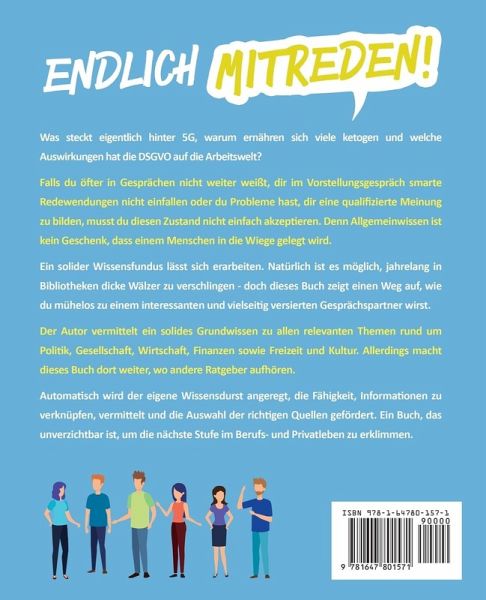 In Deutschland wird der Wert einer guten Allgemeinbildung extrem hoch eingestuft. Einer repräsentativen Studie zufolge halten 97 % der Bundesbürger Allgemeinbildung für "sehr wichtig". Rund 60 % der Befragten geben an, dass eine gute Allgemeinbildung die Attraktivität beim anderen Geschlecht erhöht. Neueste Studien zeigen, dass Menschen mit guter Allgemeinbildung über ein besonders gut vernetztes Gehirn verfügen - Lernfähigkeit und Gedächtnis bleiben somit bis ins hohe Alter erhalten. Daneben bringt dir eine solide Allgemeinbildung weitere Vorteile:Du wirkst automatisch selbstbewusster und kannst in ganz verschiedenen Situationen souverän Smalltalk führen. Allgemeinbildung lässt dich im täglichen Leben kompetent wirken und gilt beim anderen Geschlecht als sexy. Kannst du auf eine solide Allgemeinbildung zurückgreifen, fällt es dir leichter, neue Dinge zu lernen, einzuschätzen und zu bewerten. Du erkennst leichter Zusammenhänge und bist besser im Finden von unkonventionellen Lösungen. Bist du der Meinung, dass du Wissenslücken hast, die dich manchmal im Gespräch ganz schön alt aussehen lassen? Wenn du das ändern willst, hast du mit diesem Buch den richtigen Ratgeber gefunden. Das erfährst du im Buch:Wortschatz auf dem Prüfstand: Erfahre, wie du deine Ausdrucksweise deinen Gesprächspartnern anpasst und erhalte die ultimative Liste der Wörter, die dich unglaublich eloquent erscheinen lassen! Plus: Begriffe aus dem Englischen und Französischen, die du kennen musst! Kompetent erklärt und direkt bereit zur Anwendung! Schöne neue Welt und keinen Plan davon? Lese das Kapitel im Buch über neue Technologien und die Wissenschaft - am Ende erklärst du den anderen, welchen Erfindungen die Zukunft gehört, was es mit der DSGVO auf sich hat und welche Unternehmen Potenzial ohne Ende haben. Die schönsten Reiseziele auf der Erde, Deutschlands beste Ecken für einen Kurztrip und die Vorteile, mit dem Rucksack durch die Welt zu touren - vergrößere dein Wissen über die Welt und werde damit zum kompetenten Ratgeber für deine Mitmenschen! Nie wieder die Flucht ergreifen, wenn politische Themen aufs Parkett kommen: Dieses Buch hilft dir dabei, nicht nur die Politik in Deutschland und der Welt zu verstehen, sondern auch schlagfertig zu diskutieren! Nur weil die Welt der Wirtschaft und Finanzen für dich bislang ein Buch mit sieben Siegeln war, muss das nicht so bleiben - wenige Buchseiten helfen dir dabei, zum Insider zu werden! Mit Freundinnen auf Augenhöhe diskutieren oder bei Frauen gut ankommen: Eigne dir das perfekte Basiswissen rund um die Themen Spiritualität, Gesundheit und Ernährung sowie Kultur und Unterhaltung an! Dieses Buch eröffnet dir ungeahnte Möglichkeiten. Erfahre, wie du Wissen vernetzt, mit Quellen richtig umgehst und am Ende Gespräche in die von dir gewünschte Richtung lenkst! Bist du bereit für den nächsten, aufregenden Abschnitt in deinem Leben? Wenn du nie wieder ratlos in der Ecke stehen möchtest, sondern umschwärmter Mittelpunkt am Arbeitsplatz und im Freundeskreis werden möchtest, dann kaufe dir jetzt unbedingt dieses Buch!