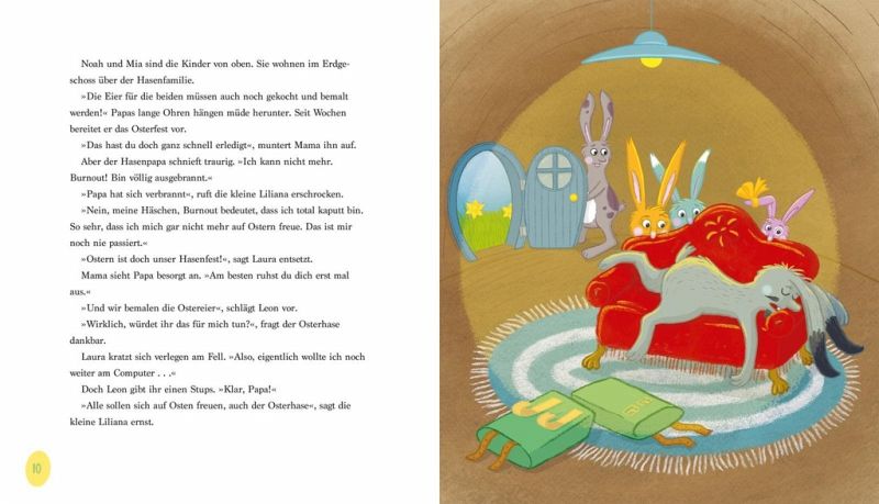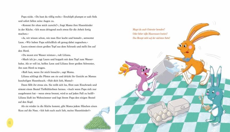 Klar, die Hasenkinder! Und damit die Hasenkinder Laura, Leon und die kleine Liliana Freude an der Aufgabe haben, macht Mama Osterhase ein Spiel daraus: Wer findet das beste Osterversteck?