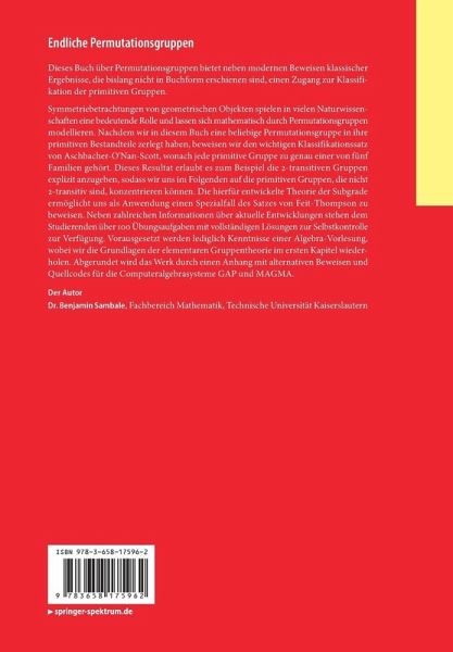 Dieses Buch über Permutationsgruppen bietet neben modernen Beweisen klassischer Ergebnisse, die bislang nicht in Buchform erschienen sind, einen Zugang zur Klassifikation der primitiven Gruppen. Symmetriebetrachtungen von geometrischen Objekten spielen in vielen Naturwissenschaften eine bedeutende Rolle und lassen sich mathematisch durch Permutationsgruppen modellieren. Nachdem wir in diesem Buch eine beliebige Permutationsgruppe in ihre primitiven Bestandteile zerlegt haben, beweisen wir den wichtigen Klassifikationssatz von Aschbacher-O'Nan-Scott, wonach jede primitive Gruppe zu genau einer von fünf Familien gehört. Dieses Resultat erlaubt es zum Beispiel die 2-transitiven Gruppen explizit anzugeben, sodass wir uns im Folgenden auf die primitiven Gruppen, die nicht 2-transitiv sind, konzentrieren können. Die hierfür entwickelte Theorie der Subgrade ermöglicht uns als Anwendung einen Spezialfall des Satzes von Feit-Thompson zu beweisen. Neben zahlreichen Informationen über aktuelle Entwicklungen stehen dem Studierenden über 100 Übungsaufgaben mit vollständigen Lösungen zur Selbstkontrolle zur Verfügung. Vorausgesetzt werden lediglich Kenntnisse einer Algebra-Vorlesung, wobei wir die Grundlagen der elementaren Gruppentheorie im ersten Kapitel wiederholen. Abgerundet wird das Werk durch einen Anhang mit alternativen Beweisen und Quellcodes für die Computeralgebrasysteme GAP und MAGMA.