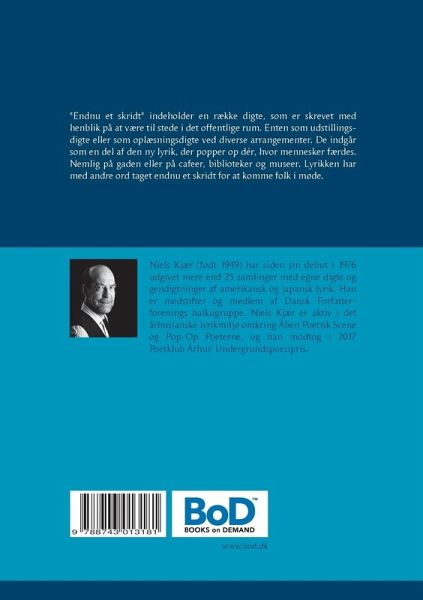 "Endnu et skridt" indeholder en række digte, som er skrevet med henblik på at være til stede i det offentlige rum. Enten som udstillingsdigte eller som oplæsningsdigte ved diverse arrangementer. De indgår som en del af den nye lyrik, der popper op lige dér, hvor mennesker færdes. Nemlig på gaden eller på cafeer, biblioteker og museer. Lyrikken har med andre ord taget endnu et skridt for at komme folk i møde.