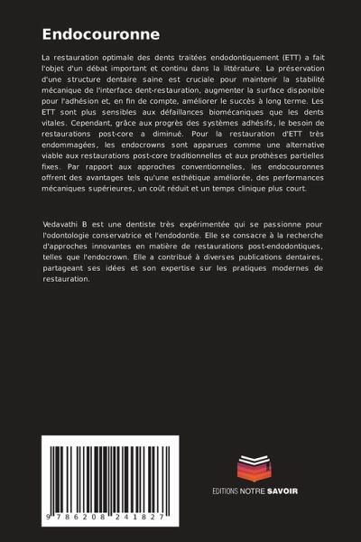 La restauration optimale des dents traitées endodontiquement (ETT) a fait l'objet d'un débat important et continu dans la littérature. La préservation d'une structure dentaire saine est cruciale pour maintenir la stabilité mécanique de l'interface dent-restauration, augmenter la surface disponible pour l'adhésion et, en fin de compte, améliorer le succès à long terme. Les ETT sont plus sensibles aux défaillances biomécaniques que les dents vitales. Cependant, grâce aux progrès des systèmes adhésifs, le besoin de restaurations post-core a diminué. Pour la restauration d'ETT très endommagées, les endocrowns sont apparues comme une alternative viable aux restaurations post-core traditionnelles et aux prothèses partielles fixes. Par rapport aux approches conventionnelles, les endocouronnes offrent des avantages tels qu'une esthétique améliorée, des performances mécaniques supérieures, un coût réduit et un temps clinique plus court.
