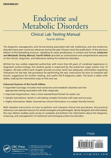 An essential resource for endocrinologists and pathologists, this volume updates its classic predecessor in both content and format. Written by two of the respected authorities in diagnostic endocrinology, it includes detailed information on how to perform and interpret those laboratory test procedures used to confirm the clinical diagnosis of the majority of known endocrine disorders. Newly designed, it provides a standardized format that makes it easier to access complete information about the diagnosis, screening, and management of traditional and newly perceived endocrine disorders. It provides sample calculations to assist with complex formulas as well as ICD-9 codes for all procedures.