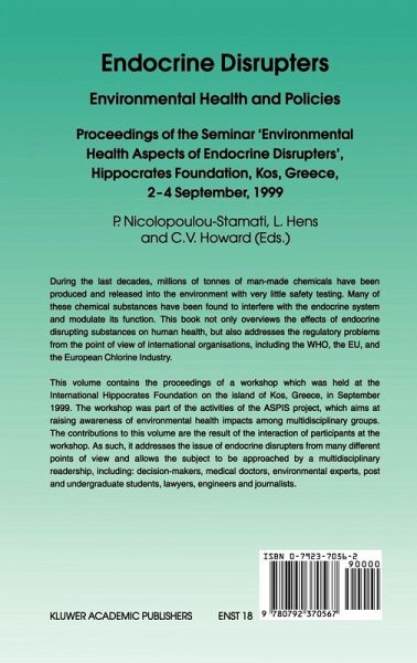 This volume contains the proceedings of a workshop held at the International Hippocrates Foundation on Kos Island, Greece, in September 1999. The workshop was part of the activities of the ASPIS project, which aims at raising awareness of environmental health impacts among multidisciplinary groups. The contributions to this volume are the result of the interaction of participants at the workshop. As such, it addresses the issue of endocrine disrupters from many different points of view and allows the subject to be approached by a multidisciplinary readership, including: decision makers, medical doctors, environmental experts, post/and undergraduate students, lawyers, engineers, and journalists.