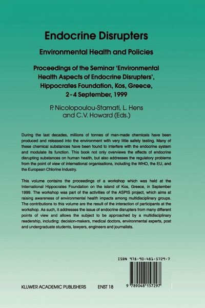 This volume contains the proceedings of a workshop held at the International Hippocrates Foundation on Kos Island, Greece, in September 1999. The workshop was part of the activities of the ASPIS project, which aims at raising awareness of environmental health impacts among multidisciplinary groups. The contributions to this volume are the result of the interaction of participants at the workshop. As such, it addresses the issue of endocrine disrupters from many different points of view and allows the subject to be approached by a multidisciplinary readership, including: decision makers, medical doctors, environmental experts, post/and undergraduate students, lawyers, engineers, and journalists.