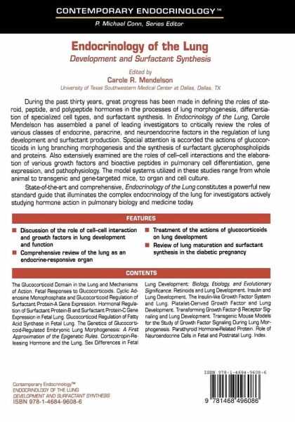 "The book is well organized and generally well written, with fewer overlaps and disagreements between authors than is normally seen in a multiauthored book. This book provides a welcome review of the role of hormones in fetal lung maturation. The book succeeds in appealing to pulmonary and developmental biologists."-Doody's Health Sciences Book Review Journal "This book will be welcomed by neonatologists, pediatric endocrinologists consulting on neonatal wards, obstetricians and last but not least pulmonologists. To the best of my knowledge it brings together for the the first time the latest knowledge on the role of hormones especially glucocorticoids on lung development and surfactant production." -Journal of Pediatric Endocrinology & Metabolism.