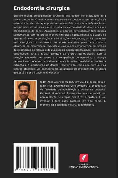Existem muitos procedimentos cirúrgicos que podem ser efectuados para salvar um dente. O mais comum chama-se apicoectomia, ou ressecção da extremidade da raiz, que pode ser necessária quando a inflamação ou infeção persiste na área óssea à volta da extremidade do dente após um procedimento de canal. Atualmente, a cirurgia perirradicular tem poucas semelhanças com os procedimentos cirúrgicos habitualmente realizados há apenas 15 anos. A ampliação e a iluminação melhoradas, os instrumentos microcirúrgicos, os ultra-sons, os novos materiais para hemostasia e obturação da extremidade radicular e uma maior compreensão da biologia da cicatrização de feridas e da etiologia da doença perirradicular persistente contribuíram para a rápida evolução da cirurgia perirradicular. Com a seleção adequada dos casos e a competência do operador, a cirurgia perirradicular pode ser considerada uma alternativa previsível e rentável à extração e à substituição de dentes. Este livro foi compilado para que os leitores obtenham um conhecimento abrangente do procedimento cirúrgico que está a ser utilizado na Endodontia.