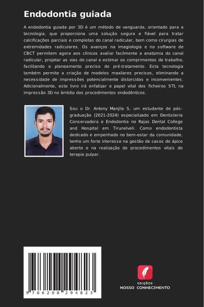 A endodontia guiada por 3D é um método de vanguarda, orientado para a tecnologia, que proporciona uma solução segura e fiável para tratar calcificações parciais e completas do canal radicular, bem como cirurgias de extremidades radiculares. Os avanços na imagiologia e no software de CBCT permitem agora aos clínicos avaliar facilmente a anatomia do canal radicular, projetar as vias do canal e estimar os comprimentos de trabalho, facilitando o planeamento preciso do pré-tratamento. Esta tecnologia também permite a criação de modelos maxilares precisos, eliminando a necessidade de impressões potencialmente distorcidas e inconvenientes. Adicionalmente, este livro irá enfatizar o papel vital dos ficheiros STL na impressão 3D no âmbito dos procedimentos endodônticos.