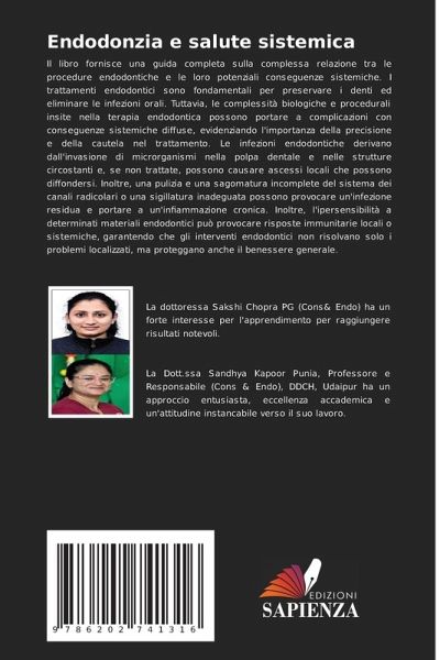 Il libro fornisce una guida completa sulla complessa relazione tra le procedure endodontiche e le loro potenziali conseguenze sistemiche. I trattamenti endodontici sono fondamentali per preservare i denti ed eliminare le infezioni orali. Tuttavia, le complessità biologiche e procedurali insite nella terapia endodontica possono portare a complicazioni con conseguenze sistemiche diffuse, evidenziando l'importanza della precisione e della cautela nel trattamento. Le infezioni endodontiche derivano dall'invasione di microrganismi nella polpa dentale e nelle strutture circostanti e, se non trattate, possono causare ascessi locali che possono diffondersi. Inoltre, una pulizia e una sagomatura incomplete del sistema dei canali radicolari o una sigillatura inadeguata possono provocare un'infezione residua e portare a un'infiammazione cronica. Inoltre, l'ipersensibilità a determinati materiali endodontici può provocare risposte immunitarie locali o sistemiche, garantendo che gli interventi endodontici non risolvano solo i problemi localizzati, ma proteggano anche il benessere generale.